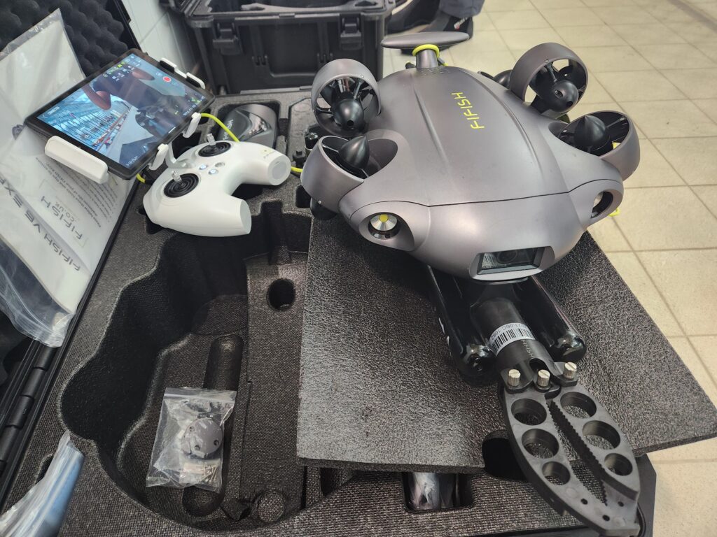 On Tues 19 Nov after the Marine Technology Research Unit research day a small team of us went to the Ipswich Scuba pool to try out the 2 Fifish ROVs that had been kindly loaned to us by Mantsbrite. We didn’t have long in the pool but enough time to test out the manoeuvrability and functionality of the grabber.