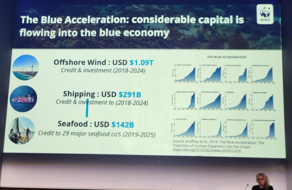 For investors, the motivation to engage in the ocean economy stems from both necessity and opportunity. As Louise Heaps, Global Lead on Sustainable Blue Economy at WWF, explains, corporate investors are driven by a mix of protecting supply chains, safeguarding assets, and ethical commitments. Offshore windfarms, for example, are not only revenue-generating energy projects but also a demonstration of climate responsibility. Similarly, blue carbon projects and nature-inclusive design are valued as both protective measures against flood and storm damage and as reputational assets in a competitive “race to the top” for sustainability leadership.