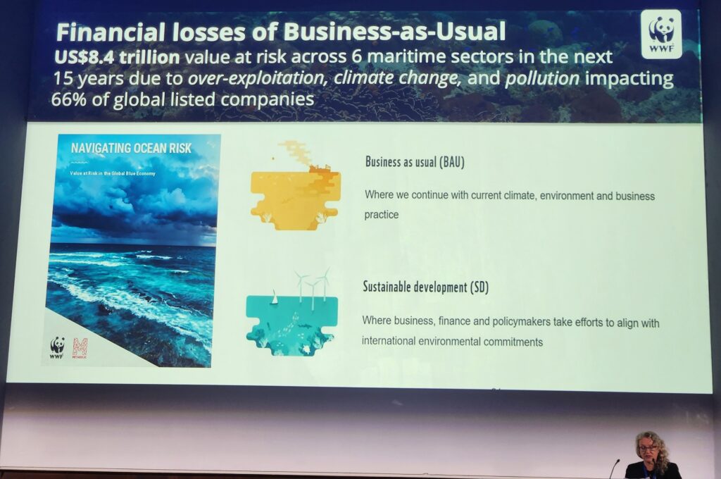 Continuing on a “business as usual” trajectory exposes a massive portion of that value to loss. WWF’s analysis highlights that roughly US$8.4 trillion of value is at risk across six maritime sectors over the next 15 years because of over-exploitation, climate change and pollution — and these risks extend into the balance sheets of listed companies and the portfolios that own them. Put bluntly: unmanaged ocean decline translates into direct, measurable financial downside for investors and lenders. This risk-to-value asymmetry is a clear motivation for the financial sector to reallocate capital toward resilience and sustainability.