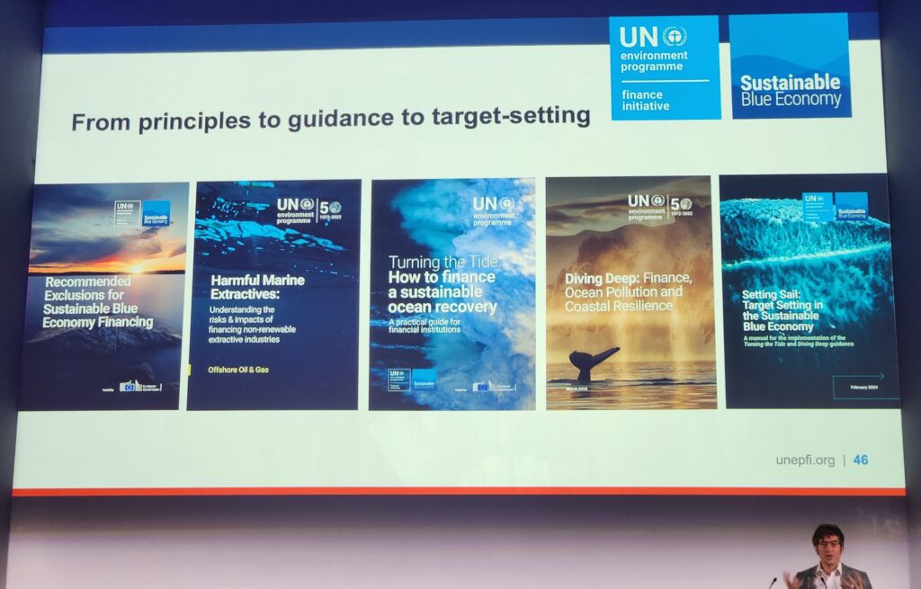 These perspectives align with broader global efforts. UNEP’s leadership on sustainable finance has highlighted the importance of collaboration, standard-setting, and measurable outcomes in ocean-related investment. As Klaas de Vos of Ocean Fox Advisory points out, measurement is crucial — investors will only commit if they can reliably track impact, risk, and return. This was explored in more detail in the session on Day 2, sharing examples of how initiatives must be structured, transparent, and scalable to unlock institutional capital.